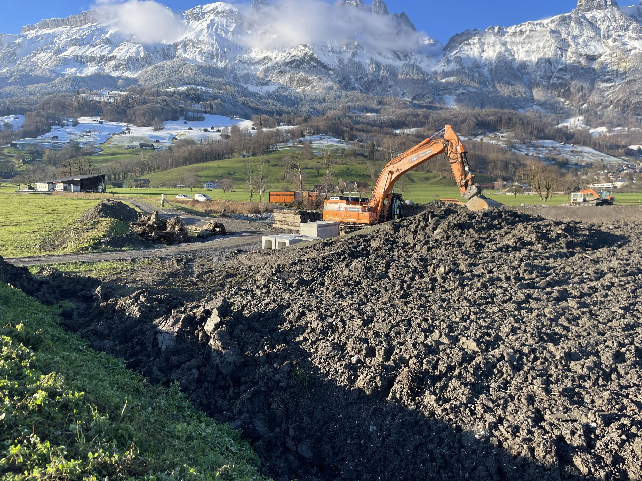 In Zusammenhang mit der Realisierung des Eidg. Schwing- und Älplerfests 2025 Glarnerland+ werden grosse landwirtschaftliche Nutzflächen für die Bereiche Arena, Verkehr und Camping vorübergehend beansprucht (Veranstaltung auf der «Grünen Wiese»). Aufgrund der Grösse der Veranstaltung und des Eingriffs in das System Boden sowie der Verpflichtung der Veranstalterin gegenüber Bodeneigentümern und Bewirtschaftern wurde eine bodenkundliche Baubegleitung installiert. Mit dem Beizug der bodenkundlichen Baubegleitung ist sicherzustellen, dass das Grossprojekt unter Einhalt der Vorgaben gemäss Bewilligungen, Bodenschutzkonzept sowie der bodenkundlichen Baugrundsätze realisiert wird.
